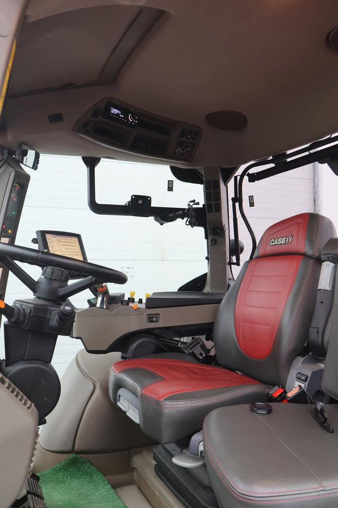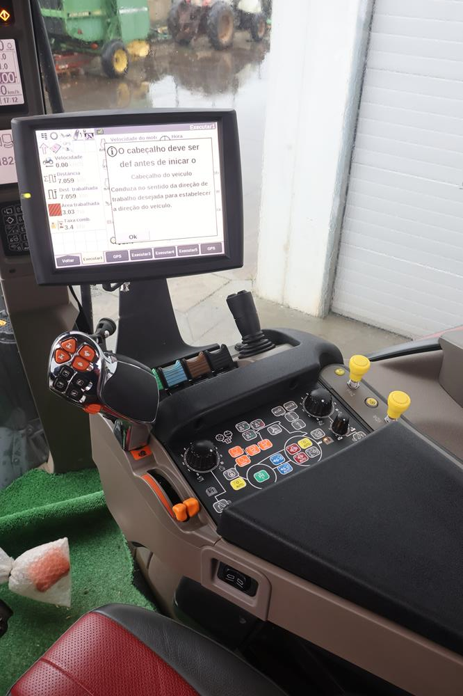 Trator equipado com condução automática c/ válvulas integradas Monitor integrado e antena integrada (colocada no topo da cabina)