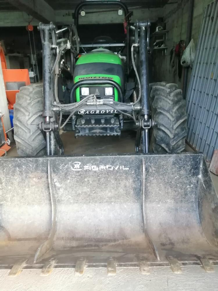 Tractor convencional equipado com carregador frontal Agrovil de balde. Motor deutz BF4M2012 de 4038cc 7cil, com 82cv / 61kw. Equipado com travões de disco em banho de óleo às 4 rodas, 3 dist. hidr. traseiros, debito bomba hidr. principal 54lts/min. Transmissão 20x20 40kmh, 4 velocidades de TDF/PTO. Com garantia.